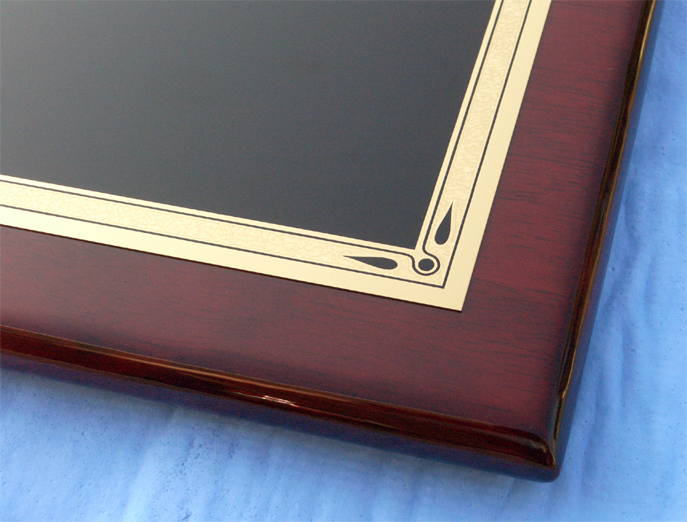 Rosewood Finish 9"x12" plaque adorned with a 7"x10" acrylic plate. Plaque can sit upright with included hardware, or hung on a wall.